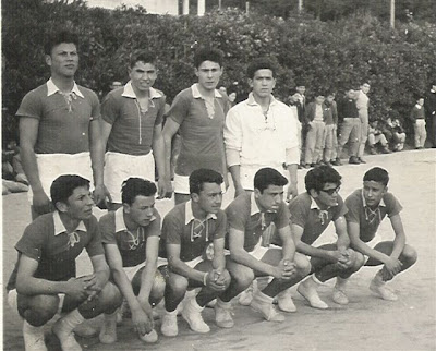 A foto retrata a equipa do 1º. ano dos serralheiros, ano lectivo 63-64, e está datada de 18-04-64. O local é o campo de jogos/recreio da escola antiga, chafariz das 5 bicas. Estavamos a disputar o 1º. Torneio Inter-turmas e... bom a memória já não é o que era. No entanto vamos lá identificar estes "garbosos" rapazes, mas para isso vou precisar da vossa ajuda pois não recordo o nome de todos. Assim temos, em cima: Alfredo Justiça, José João, Joaquim Matias, Eduardo. Em baixo: ?, ?, Bento, Ventura, Orlando e Lúcio.